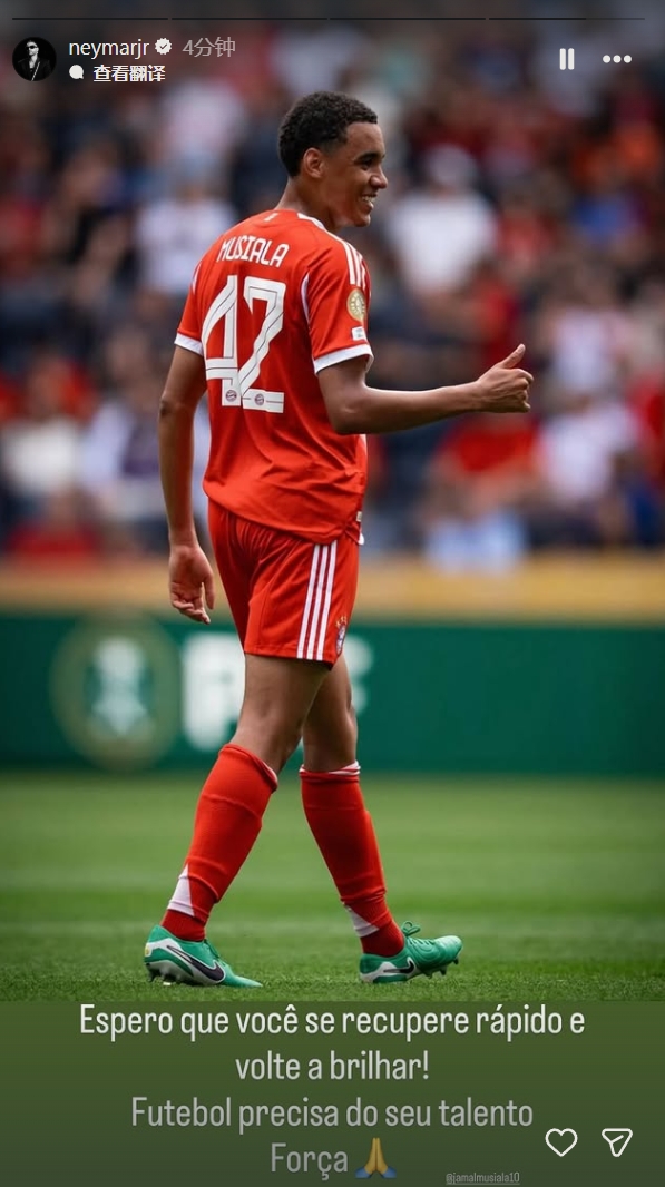 关注这场比赛的巴黎名宿内马尔也在赛后通过社媒送上祝福:“希望你早日康复,再次闪耀!足球需要你的天赋,加油!”