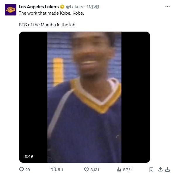 10、湖人官方:“科比之所以成为科比,是因为他的努力。幕后:曼巴在实验室中的身影。”
